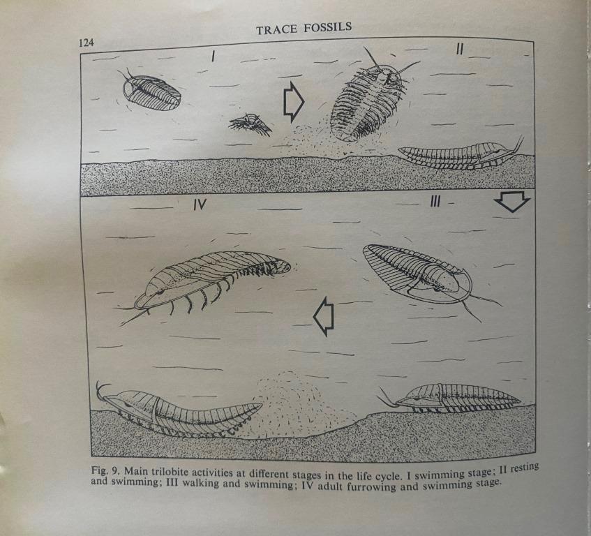 Tracks are usually 3-5 cm across, indicating an animal of that size. The lack of juvenile tracks suggests they must have been somewhere else. The chances are Juveniles were more pelagic, perhaps only landing on the sea bed to create Diplichnites type tracks, which for a smaller and lighter animal would be even harder to find.